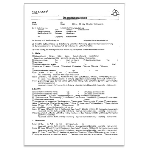 Das Übergabeprotokoll dokumentiert den Zustand einer Mietwohnung bei der Schlüsselübergabe. Mängel, Schäden und Verbesserungen werden erfasst und dient als Nachweis für Vermieter und Mieter.