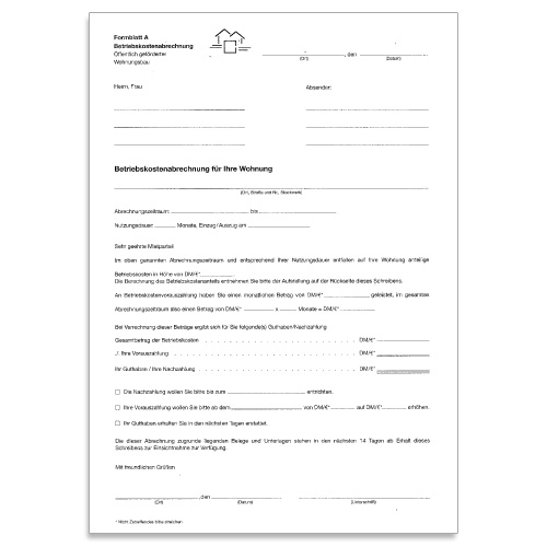 Das Formblatt A für die Betriebskostenabrechnung ist ein vorgefertigtes Dokument, das Vermieter nutzen können, um Mietern übersichtlich die jährlichen Betriebs- und Nebenkosten aufzuschlüsseln und abzurechnen.