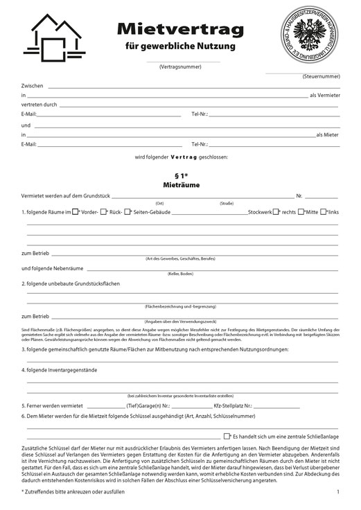 Mietvertrag für gewerbliche Nutzung PDF (Downloadprodukt)