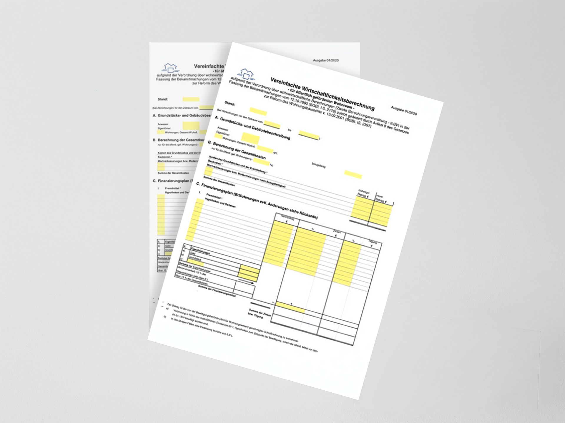 Exel-Tabelle zur erleichterten Berechnung der Wirtschaftlichkeit für öffentlich geförderten Wohnraum
