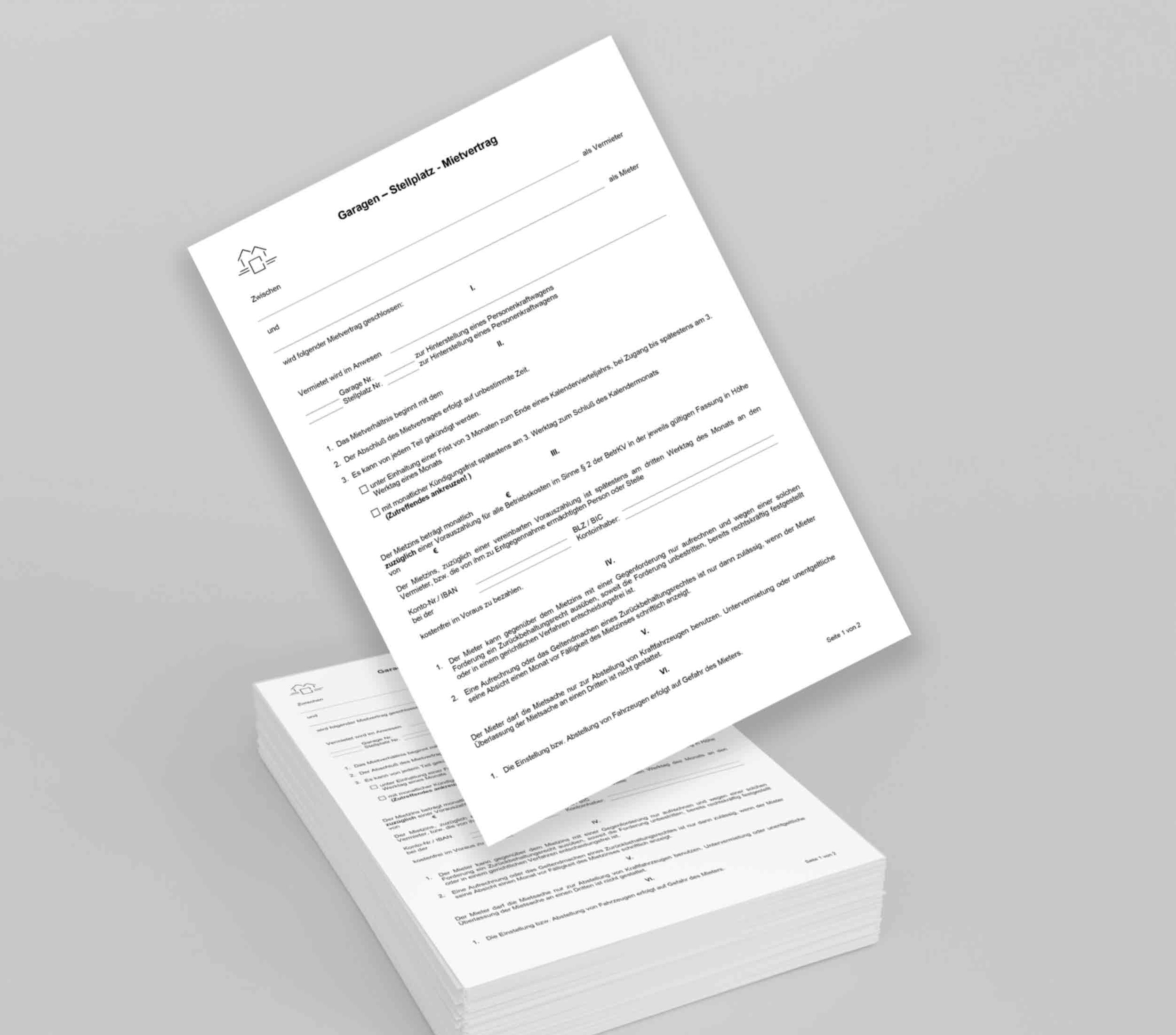Der Garagenmietvertrag regelt Mietbedingungen für eine Garage oder einen Stellplatz und definiert Rechte und Pflichten von Vermieter und Mieter bezüglich der Garagennutzung.
